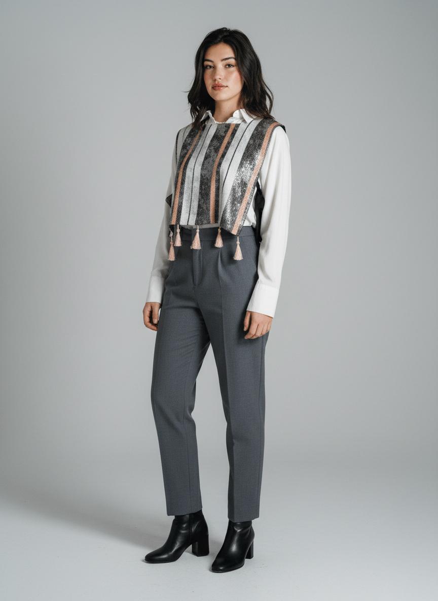Aria Çizgili Desenli Püskül Detaylı Kadın Yelek