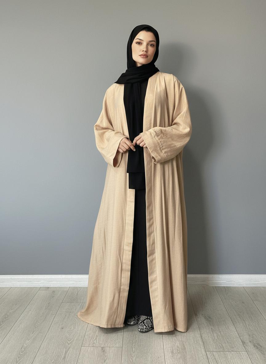Şıklığı ve rahatlığı bir araya getiren bej salaş kesim kadın abaya, günlük kullanım ve özel kombinler için zamansız bir parçadır. Akıcı dökümlü yapısı sayesinde vücut hatlarını belli etmezken, hafif dokusu gün boyu konfor sağlar. Minimal tasarımı sayesinde elbise, takım veya basic kombinlerin üzerine kolayca uyum sağlar. Hem modern hem de sade bir stil sunan bu abaya modeli, gardırobunuzun kurtarıcı dış giyim parçalarından biri olmaya aday.