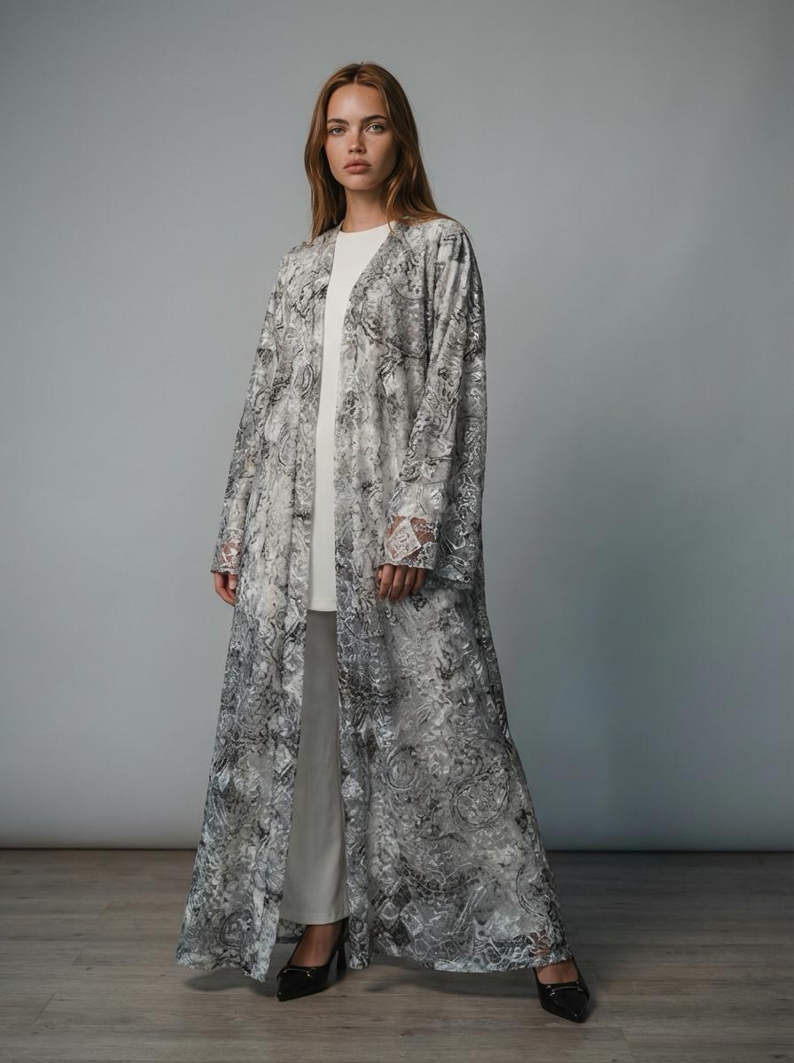 Bohem stilin özgün ruhunu yansıtan gri etnik desenli uzun abaya, hafif ve akışkan yapısıyla gün boyu konfor sunar. Salaş kesimi sayesinde farklı kombinlerle rahatça uyum sağlar; elbise, takım veya günlük kombinlerin üzerine zarif bir tamamlayıcı olarak kullanılabilir. Modern çizgilerle buluşan bohem desenler, abayaya hem şehirli hem de özgün bir karakter kazandırır. Günlük kullanım, özel buluşmalar ve stil sahibi kombinler için ideal bir dış giyim parçasıdır.
