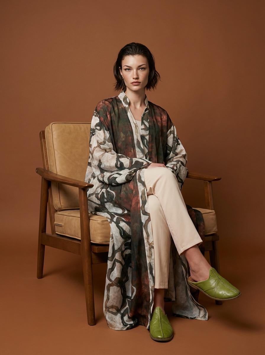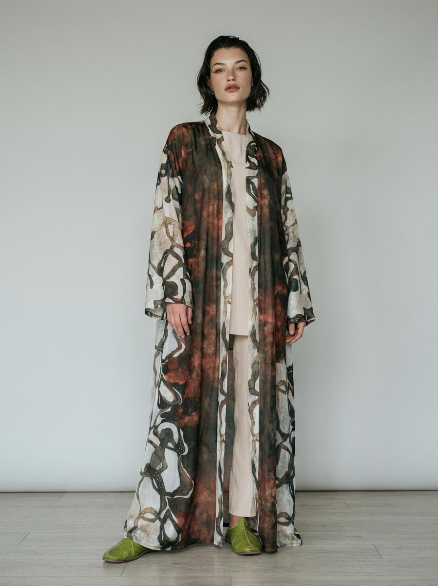 Bohem desenlerin doğal tonlarla buluştuğu bu uzun kadın abaya, zarif ve özgün bir stil sunar. Şifon yapısı sayesinde gün boyu konfor sağlarken salaş kesimiyle modern ve rahat bir görünüm oluşturur. Günlük kombinlerden özel davet stiline kadar farklı ortamlarda kolayca kullanılabilen bu desenli abaya, sade parçalarla eşleştirildiğinde stilinizi ön plana çıkarır. Hafif dokusu ve dökümlü formu sayesinde mevsim geçişlerinde de ideal bir tamamlayıcıdır.