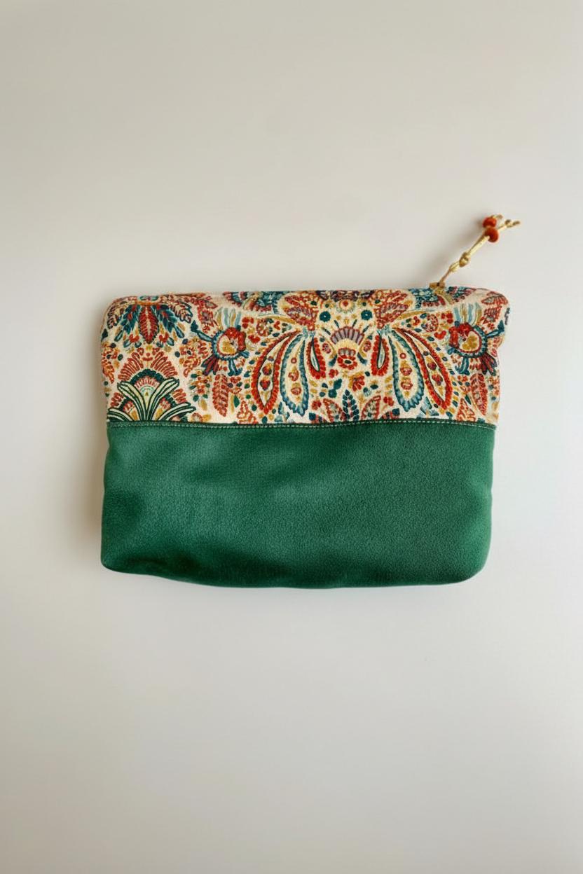 Etnik Desenli Yeşil Kadın El Çantası