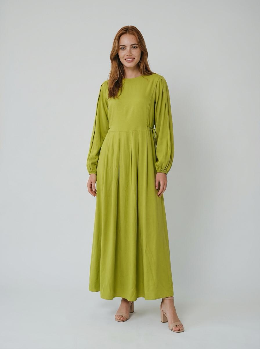 Fıstık Yeşili Yandan Bağlamalı Uzun Kadın Elbise