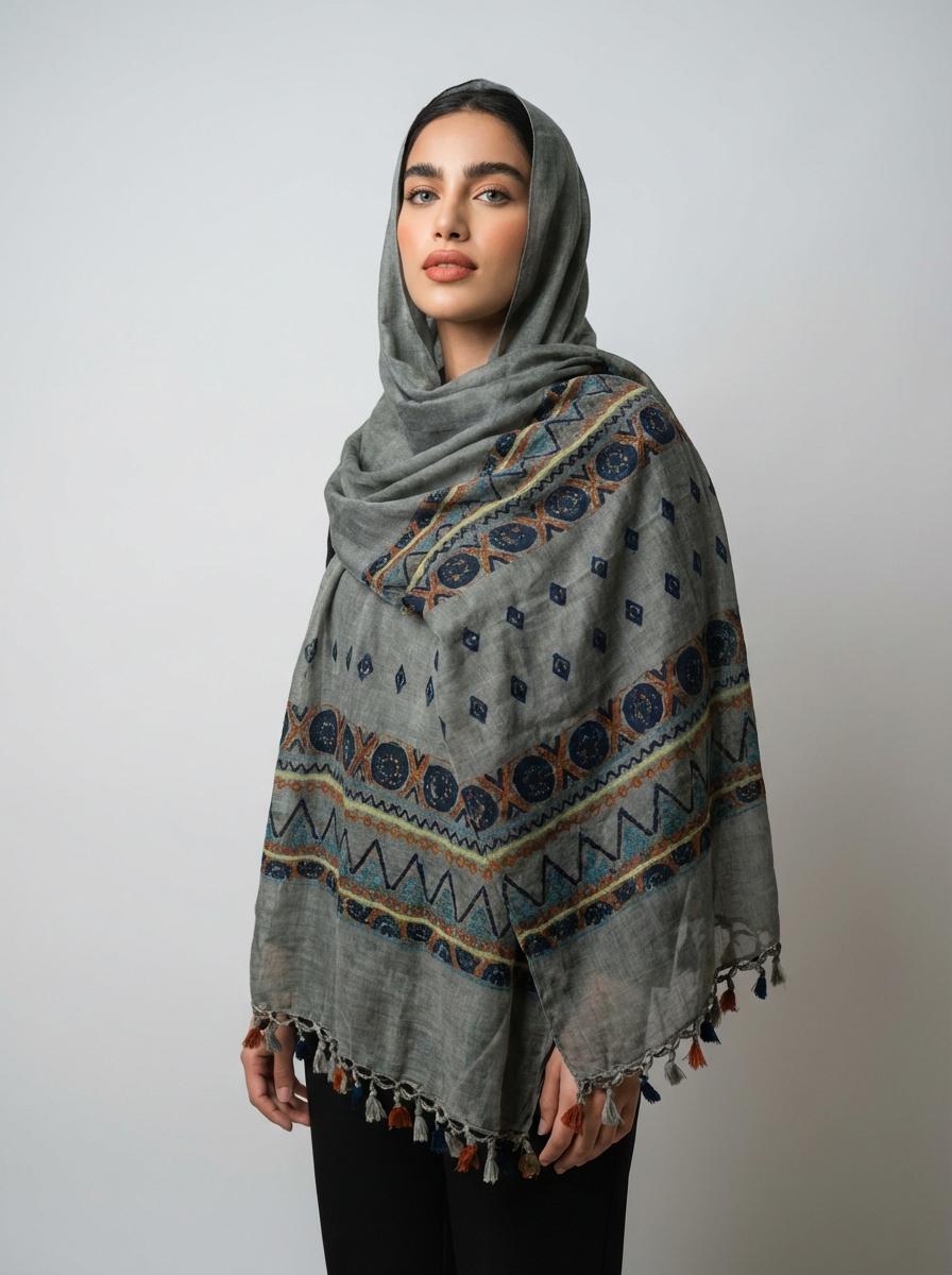 Bu şal, hafif ve yumuşak dokusu sayesinde gün boyu rahatlıkla kullanılabilir. Farklı stillerde kombinlenebilmesi, onu hem günlük hem de özel günlerde tercih edilebilir bir aksesuar haline getirir. Gri rengi ve etnik desenleri, kıyafetlerinize zarif bir dokunuşta bulunur. Spor bir ceketin üzerine ya da şık bir elbisenin tamamlayıcısı olarak rahatlıkla kullanabilirsiniz.