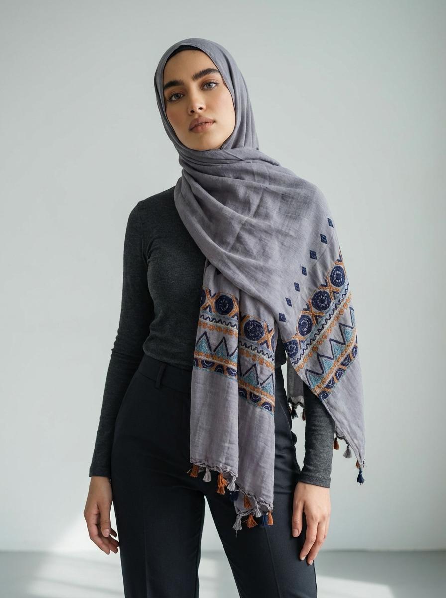Hem klasik hem modern kombinlerle kolayca uyum sağlayan bu desenli kadın şal, tesettür giyimde stilinizi tamamlayan güçlü bir aksesuardır. Dört mevsim kullanıma uygun yapısı sayesinde dolabınızın vazgeçilmez parçalarından biri olmaya aday.