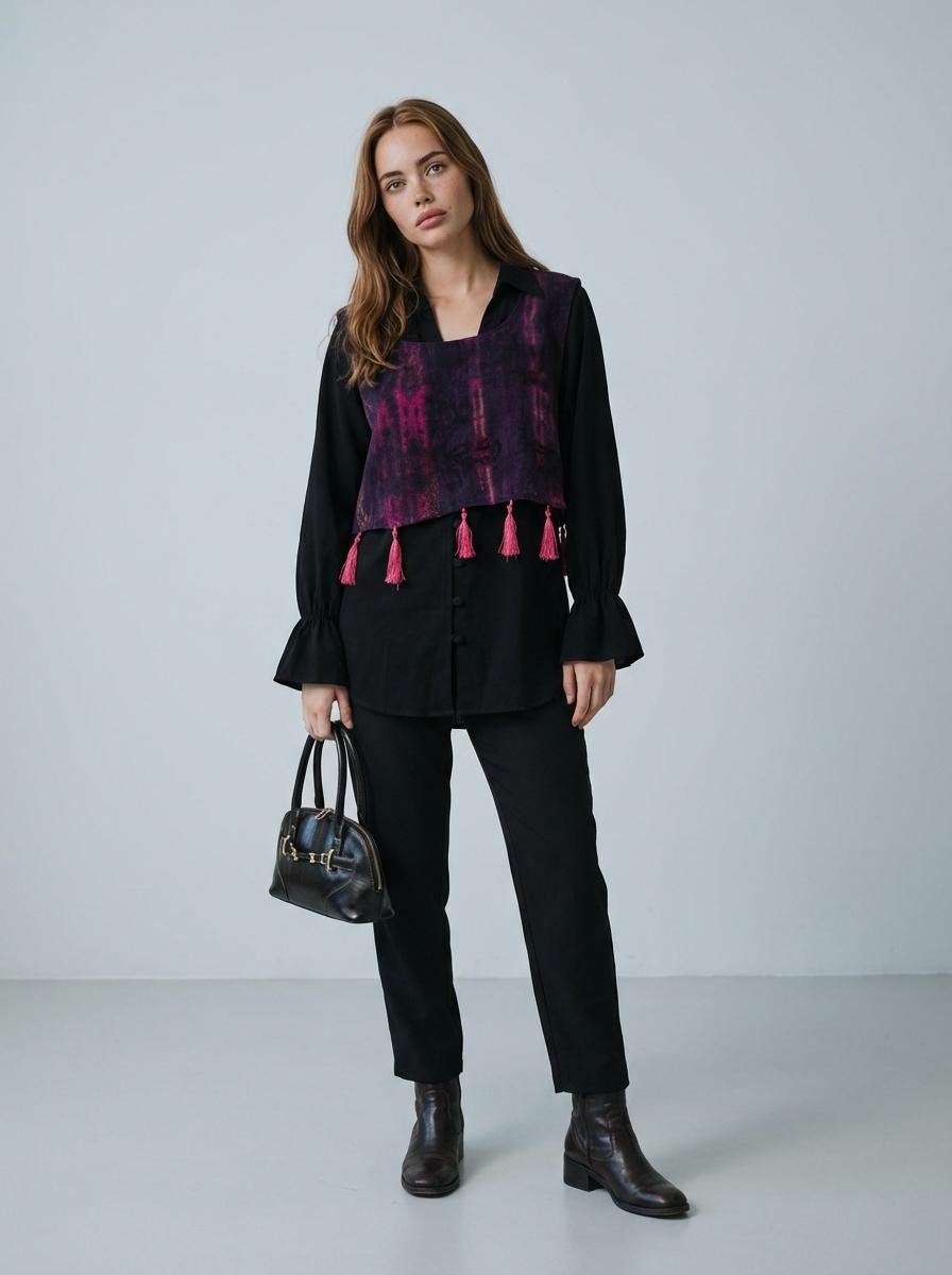 Mila Mor Desenli Yandan Bağlamalı Kadın Süveter, modern renk geçişleri ve özgün deseniyle güçlü bir stil ifadesi sunar. Yandan bağlamalı tasarımı sayesinde vücuda uyumlu ve zarif bir siluet oluştururken, hareketli püskül detayları ürüne dinamik bir görünüm kazandırır.