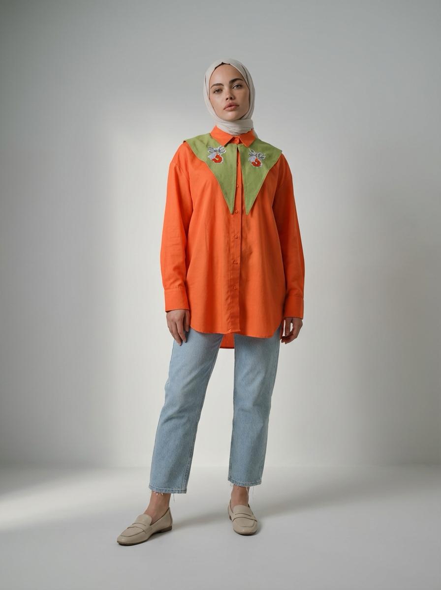 Nakış detaylı kontrast yaka aksesuarı, sade gömlek ve tunik kombinlerine karakter kazandırmak için tasarlanmıştır. Canlı renklerdeki nakış işlemeleri ve modern kesimiyle stilinize özgün bir dokunuş ekler. Kolay takılıp çıkarılabilen yapısı sayesinde farklı parçalarla rahatlıkla kombinlenebilir. Günlük kombinlerden özel stil denemelerine kadar geniş kullanım alanı sunan bu yaka, kadın giyim aksesuar koleksiyonlarının tamamlayıcı parçasıdır.