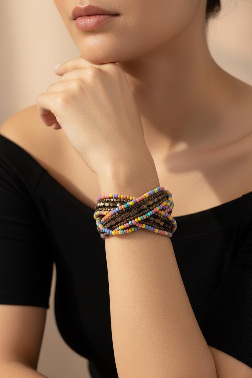 Renkli Boncuk Detaylı Çoklu Bohem Kadın Bileklik