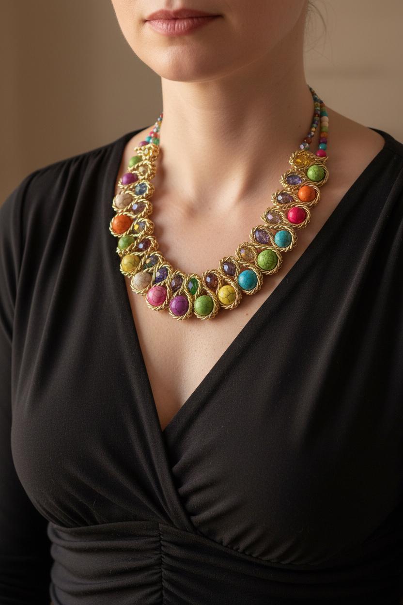 Renkli Taşlı Gold Kadın Kolye, hem gündüz hem de gece kullanımına uygun bir tasarıma sahiptir. Şık bir bluzla veya elbiseyle kombinleyerek, oldukça zarif bir görünüm elde edebilirsiniz. Ayrıca, bu kolye tek başına da dikkat çekici bir aksesuardır. Minimalist bir görünüm için, sade bir kıyafetle birlikte kullanarak şıklığınızı tamamlayabilirsiniz.
